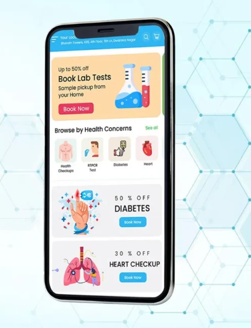 DiagnoMart is a convenient and reliable lab testing app designed to make healthcare easier for everyone. With just a few taps, you can book diagnostic tests, receive home sample collections, and access your reports online — all from the comfort of your home.